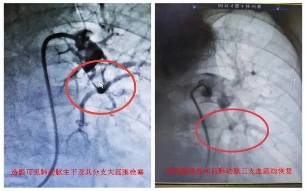 78岁的楼大伯“阳”了3天后出现胸闷不适,由家人送至萧山中医院内科门诊就诊。经肺动脉造影提示其左右肺动脉主干及其分支大范围栓塞。