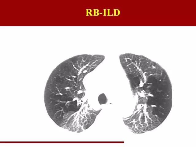 那么咱们看看处于中间状态的呼吸性细支气管炎间质性肺病应该是比较少见的,对吧,图片来自文献