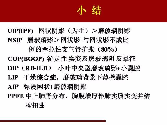 上述是间质性肺炎分类解读和HRCT诊断的全部内容,水平有限,错误之处请各位老师指出。在间质性肺炎的诊断中影像科医生可以找到自信和地位,这种地位靠咱们自己来争取,如果只下到间质性肺炎层面,那么咱们的地位就可能只是影楼,如果能更加具体,和临床病理结合也许在间质性肺炎的诊断治疗的路上可以走的更远,更从容。