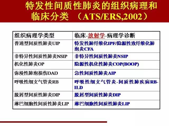 2002年美国心胸协会和欧洲呼吸协会通过长期的临床和病理对照,对间质性肺炎做了重新分类
