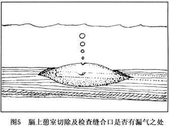 (2)麻醉与体位:气管内插管(最好采用清醒插管),静脉复合麻醉。一般取右侧卧位。虽然膈上憩室多突向右侧,但经胸入路仍以采用经左胸途径为宜,因为经左胸途径便于修补食管裂孔疝,而且在切除憩室之后,便于施行延至贲门的食管肌层切开术。
