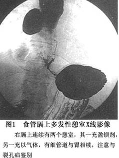 膈上食管憩室病人在术前进行 X 线钡餐造景检查者、内镜检查以及食管测压检查时,可能发现下列合并症: