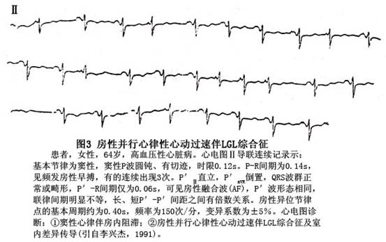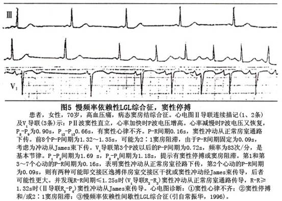 ②频率依赖性短P-R综合征:其特点同频率依赖性WPW综合征(图5)。
