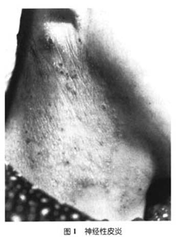 神经性皮炎又名慢性单纯性苔藓(lichen simplex chronicus),是一种局限性皮肤神经功能障碍性皮肤病,又叫慢性单纯苔藓。和中医所谓的牛皮癣、摄领疮相似。是以阵发性瘙痒和皮肤苔藓化为特征的慢性皮肤炎症。病因尚不明确,一般认为与长期搔抓、摩擦和神经精神因素及某些外在刺激因素有关。 医学百科网 | YxBaike.Com