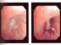 19、 胸部外伤及胸部手术后应用 纤支镜可清除气道内血液及分泌物,同时可了解气管损伤部位、范围及严重程度,还可发现手术的并发症及了解手术吻合口情况。 20、 肺癌治疗中及治疗后随诊 应用纤支镜检查对肺癌手术和放化疗患者进行随诊,可了解治疗效果及治疗后有无复发。