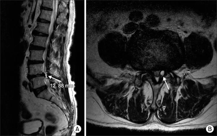 由于MRI广泛用于临床,椎小关节滑膜囊肿的确诊概率越来越高,本病常发生于椎小关节退行性变的基础上,囊肿发生在椎小关节后外侧关节旁滑膜,有时可见一小管状高信号影与关节间隙的积液相连,如向脊膜囊突出,即见脊膜囊弧形受压,并与脊膜囊有一低信号影分隔。